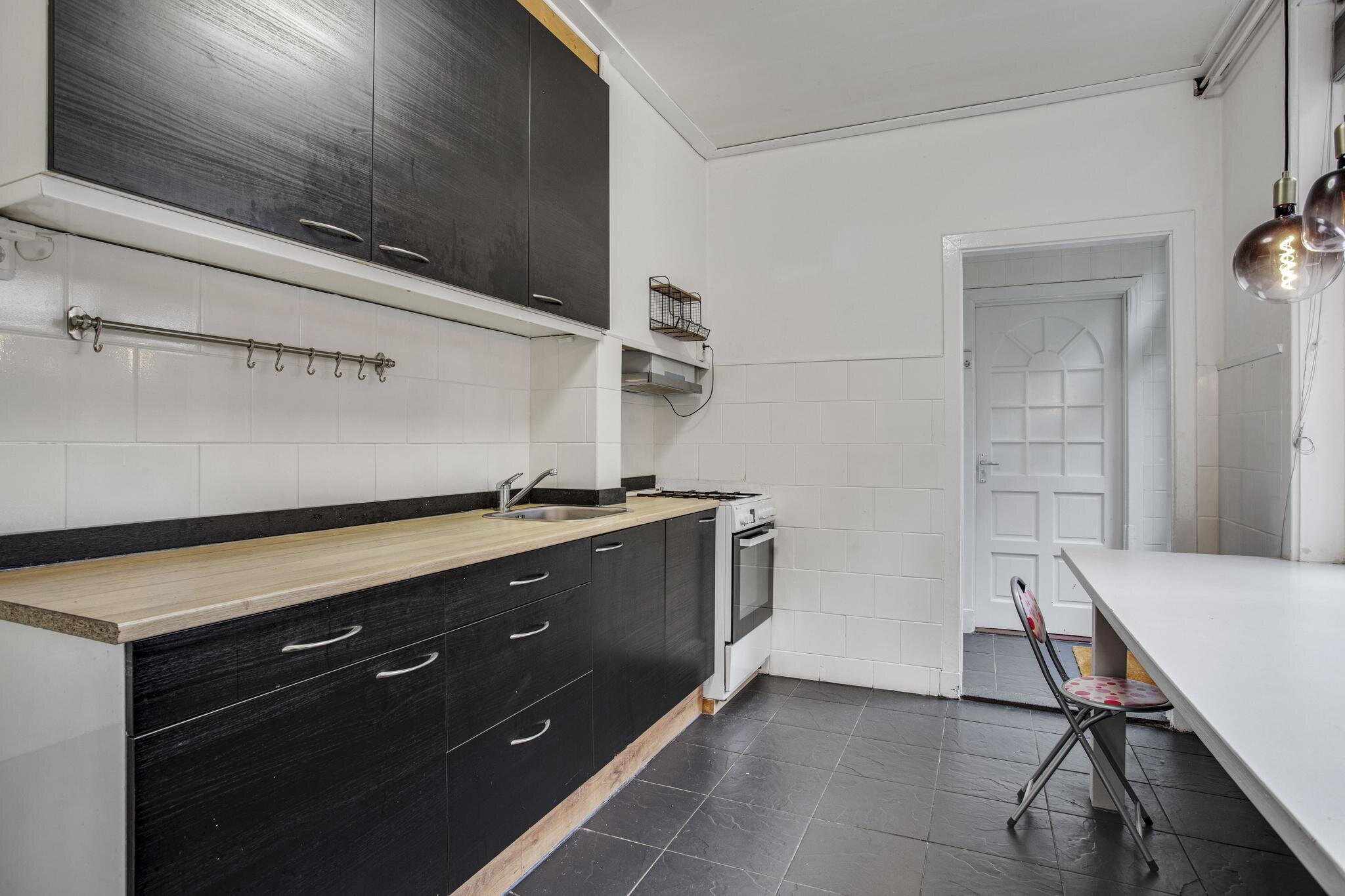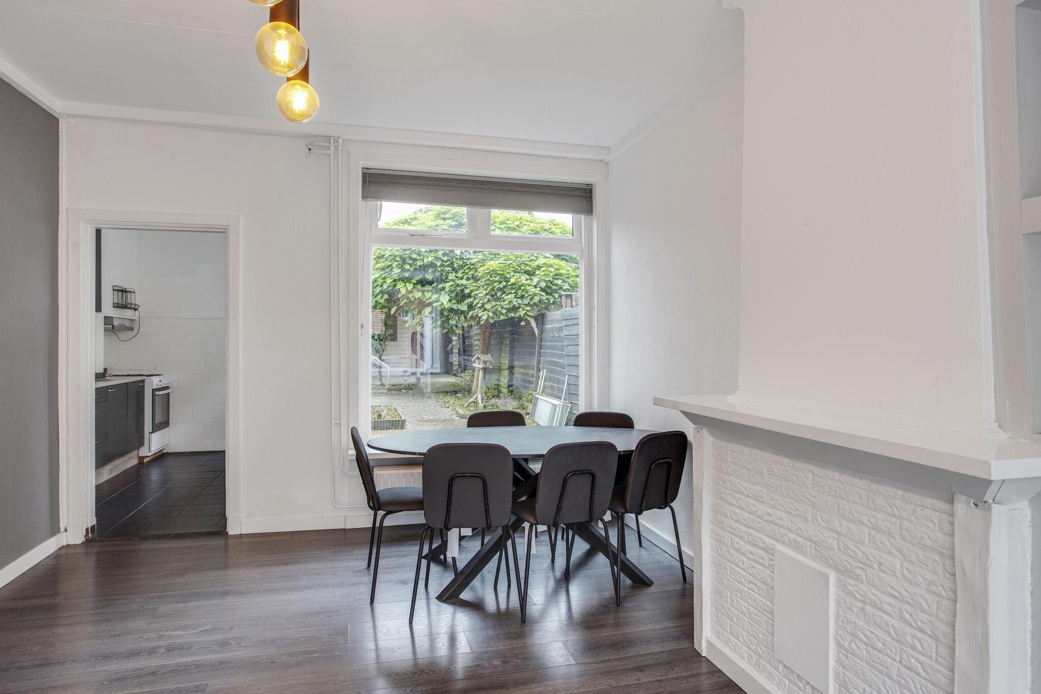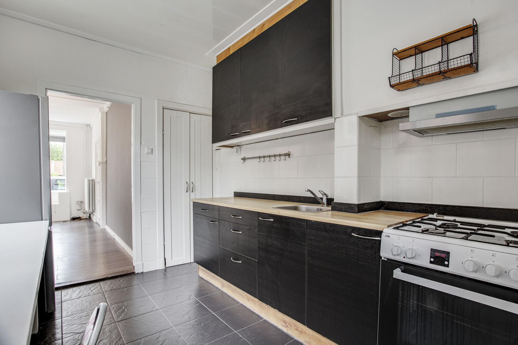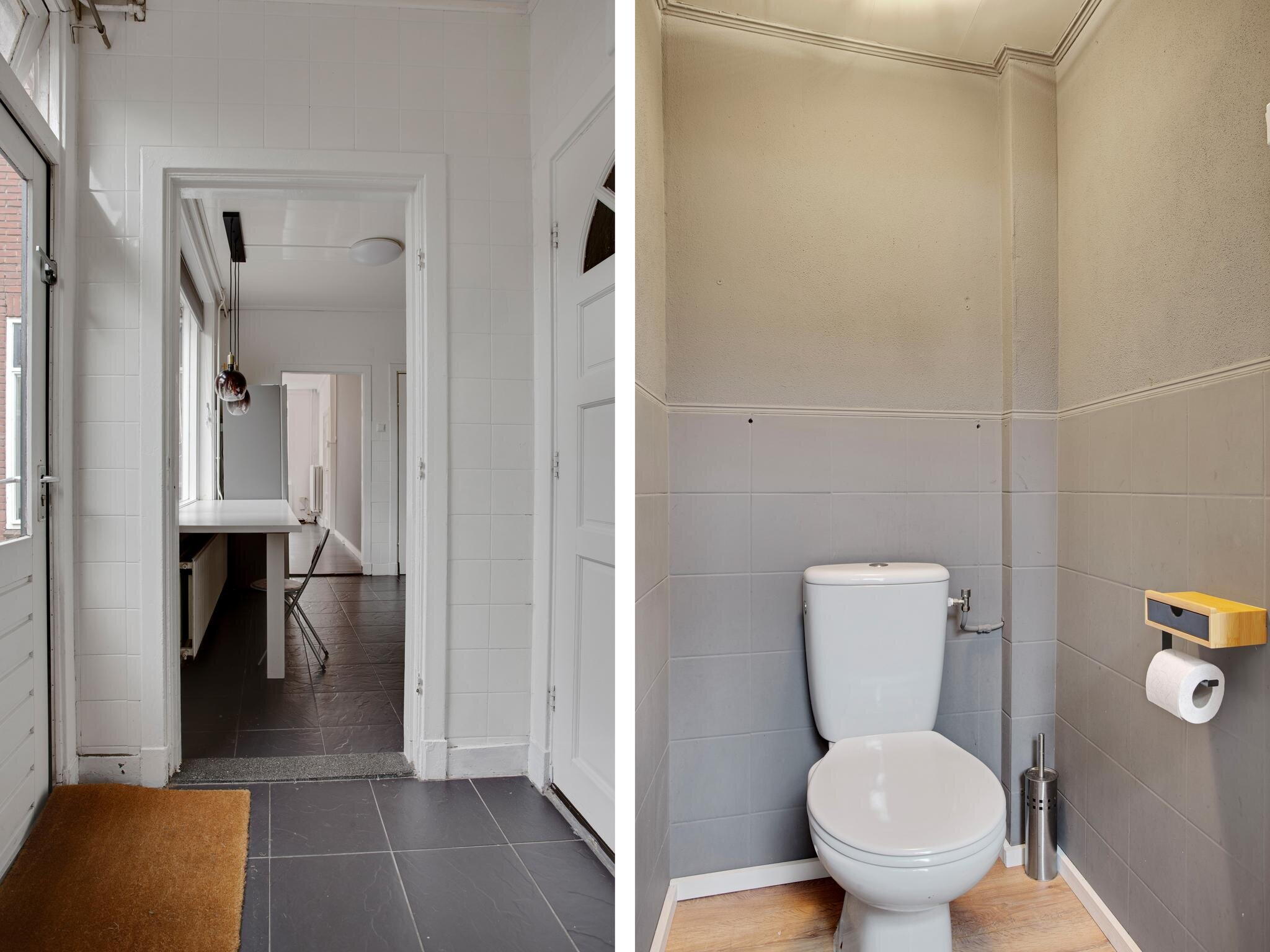 Via de voordeur betreedt u de entreehal, met links de meterkast, recht vooruit de trapopgang en rechts de toegang tot de woonkamer. De woonkamer is aangenaam licht en beschikt over een sfeervolle erker, een karakteristieke schouw en voldoende ruimte voor een comfortabele zithoek. Aansluitend bevindt zich de royale keuken, voorzien van een verdiepte trapkast en een tweede werkblad, wat deze ruimte veelzijdiger maakt dan enkel voor koken. Vanuit de keuken is er toegang tot een achterhal met de achterdeur, het separate toilet en de badkamer.